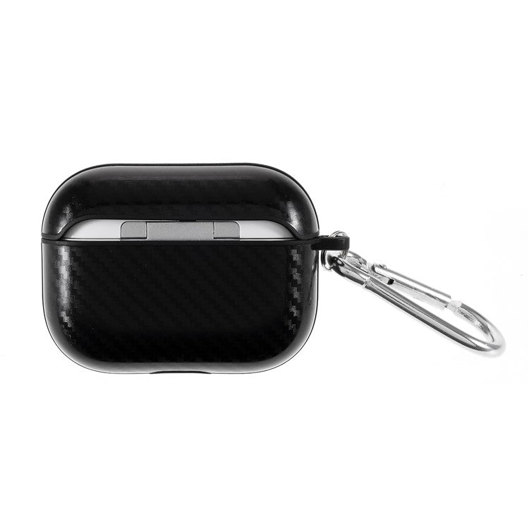Anti-fingerprint Carbon Fiber Texture TPU Case with Hook for Apple AirPods Pro - Black