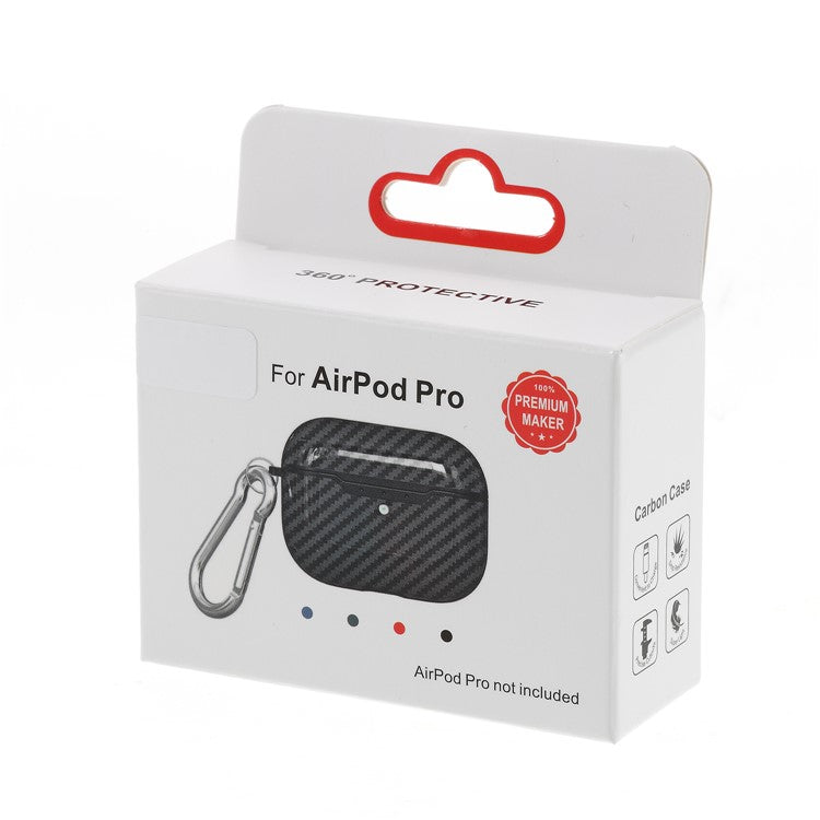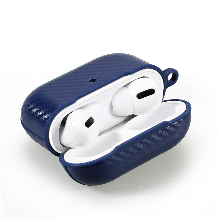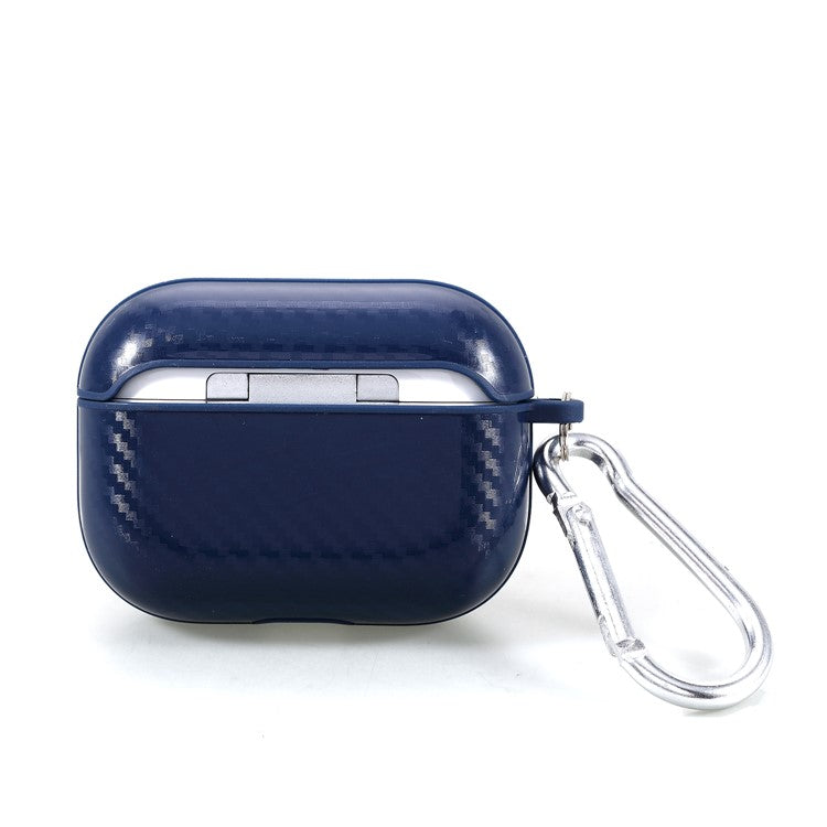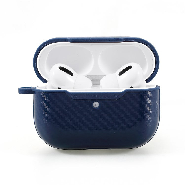 Anti-fingerprint Carbon Fiber Texture TPU Case with Hook for Apple AirPods Pro - Blue