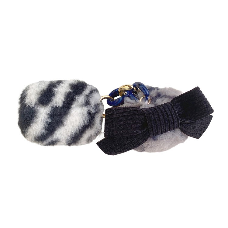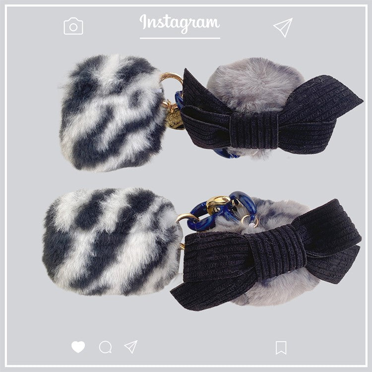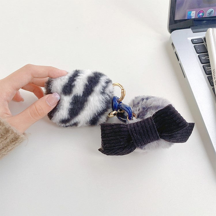 Bluetooth Earbuds Case for Apple AirPods Pro, Leopard Pattern Soft Fake Fur Coated TPU Protective Cover with Bowknot Pompom - Black / White