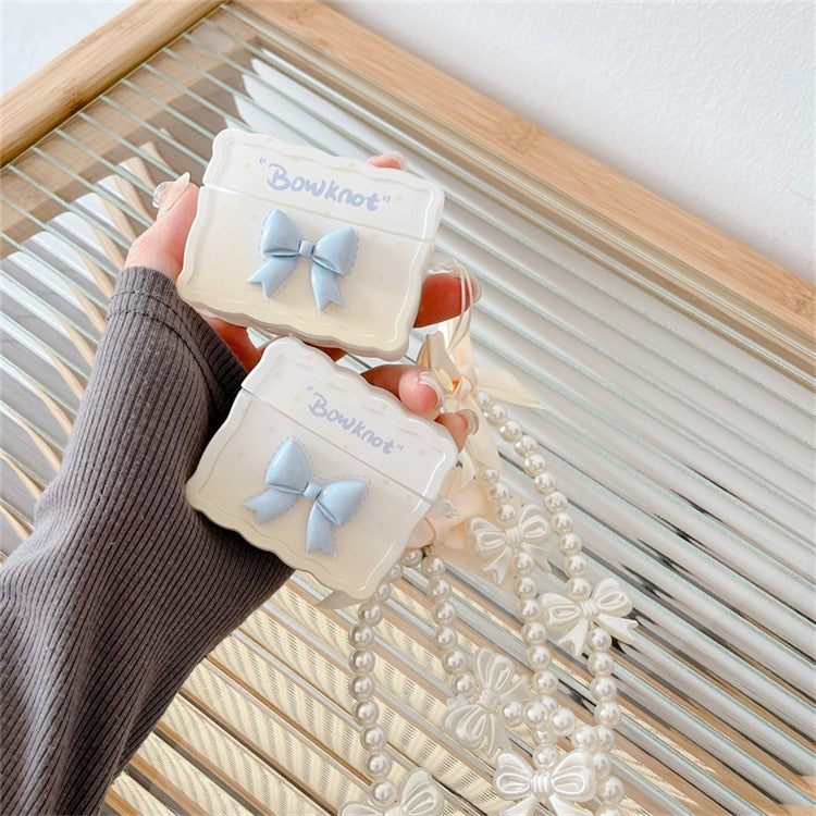 For Apple AirPods 3 Bowknot Design Soft TPU Protective Cover Anti-shock Earphone Case with Pearls Pendant
