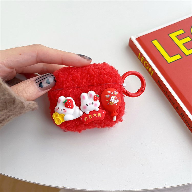 For Apple AirPods 3 Cute Rabbit Decor Anti-scratch Case Soft Fluff TPU Bluetooth Earphone Cover with Ring Buckle