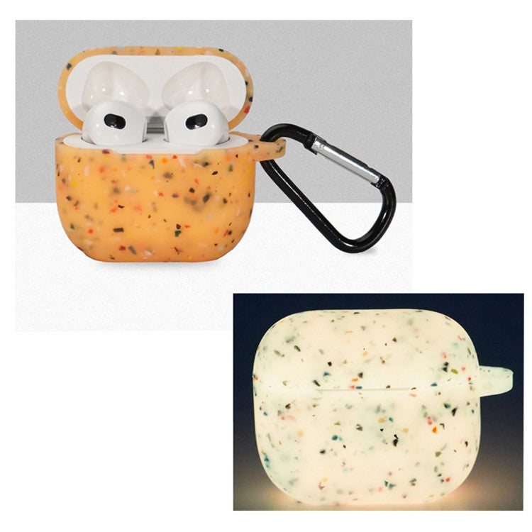 For Apple AirPods 3 Flower Design Earphone Luminous Case Bluetooth Earbuds Silicone Protective Cover with Anti-lost Carabiner - Luminous Yellow