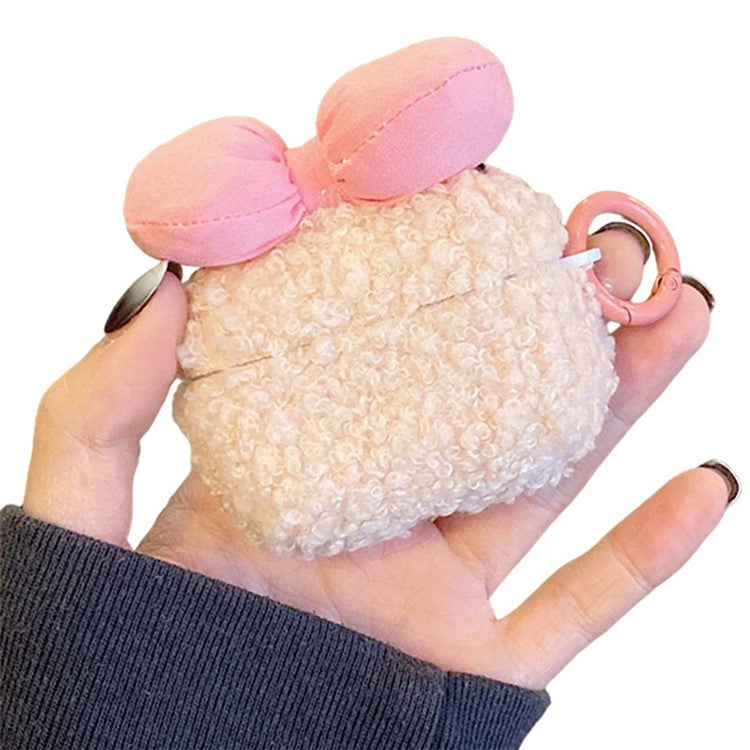 For Apple AirPods Pro Lovely Bowknot Soft Fluff TPU Drop-proof Cover Bluetooth Earphone Protective Case with Ring Buckle