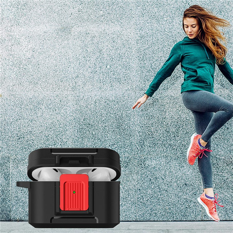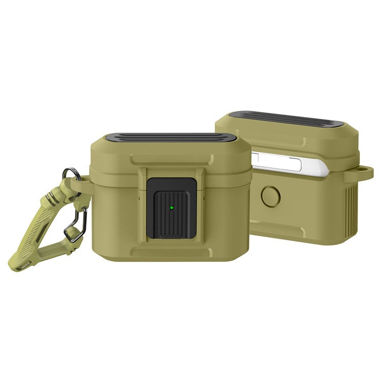 For Apple AirPods Pro Luggage Case Design Protective Case Pressing Buckle TPU+PC Anti-drop Cover - Green / Black
