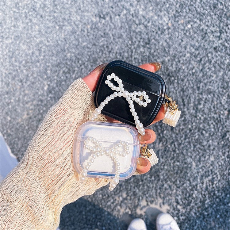 For Apple AirPods Pro Stylish Pear Bowknot Soft TPU Earphone Case Anti-fall Protective Cover with Square Pear Pendant - White