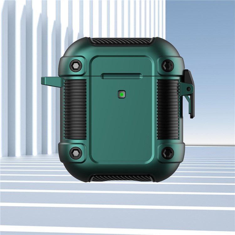 For Apple AirPods with Charging Case (2016)/(2019)/AirPods with Wireless Charging Case (2019) Earphone Case Lock Buckle PC + TPU Earbuds Protective Cover with Carabiner - Green