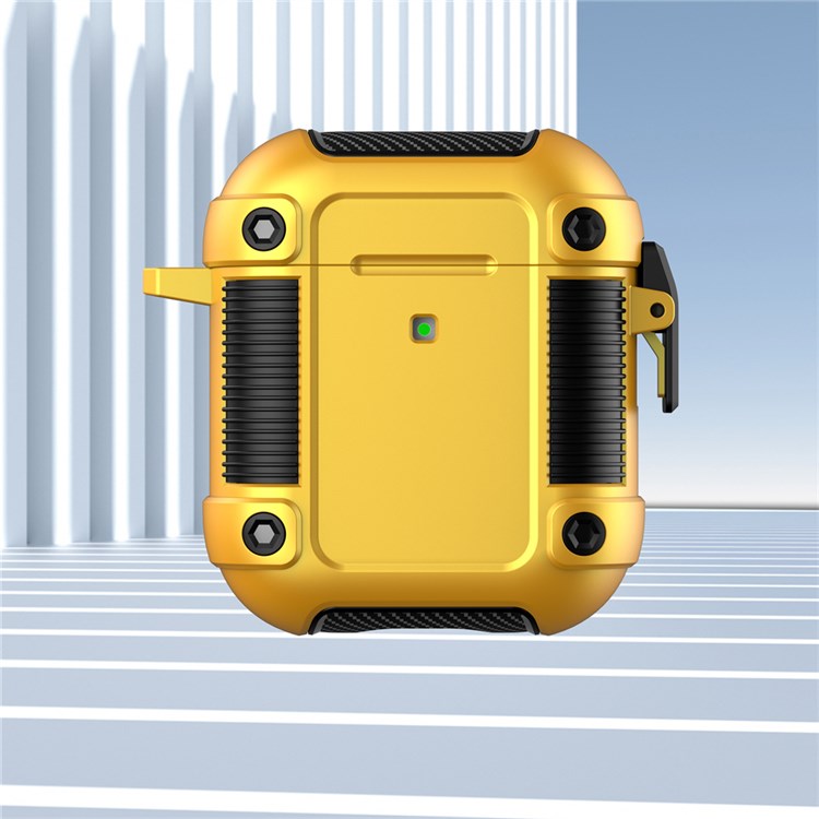 For Apple AirPods with Charging Case (2016)/(2019)/AirPods with Wireless Charging Case (2019) Earphone Case Lock Buckle PC + TPU Earbuds Protective Cover with Carabiner - Yellow