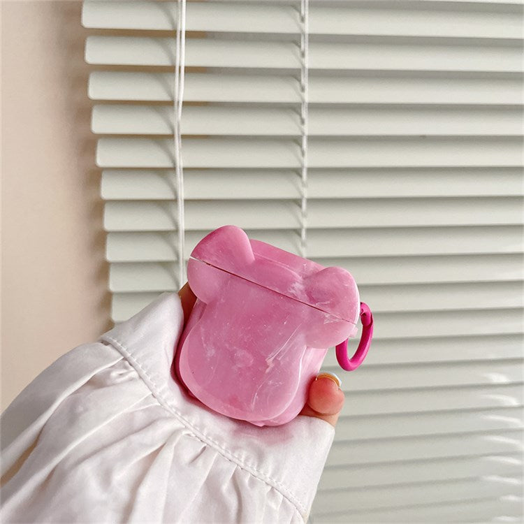 For Apple AirPods with Charging Case (2016)/(2019)/AirPods with Wireless Charging Case (2019) Earphone Case Soft TPU Marble Pattern Cute Bear Head Shape Protective Cover with Buckle - Pink