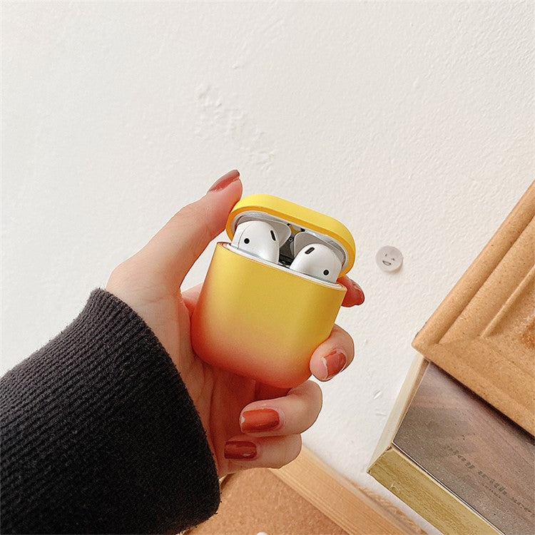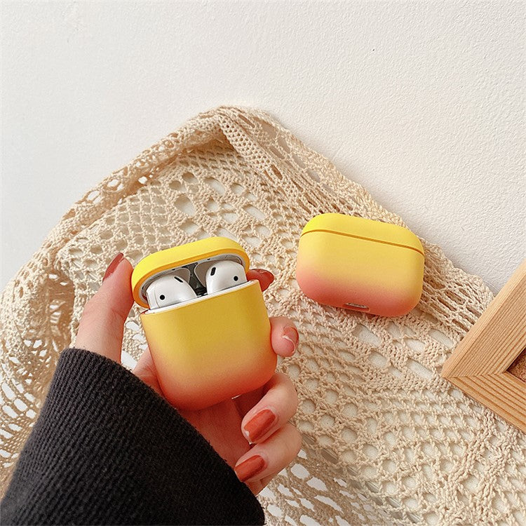 For Apple AirPods with Charging Case (2016) / (2019) / AirPods with Wireless Charging Case (2019) Gradient Frosted PC Hard Case Protective Cover (without Buckle) - Yellow / Pink