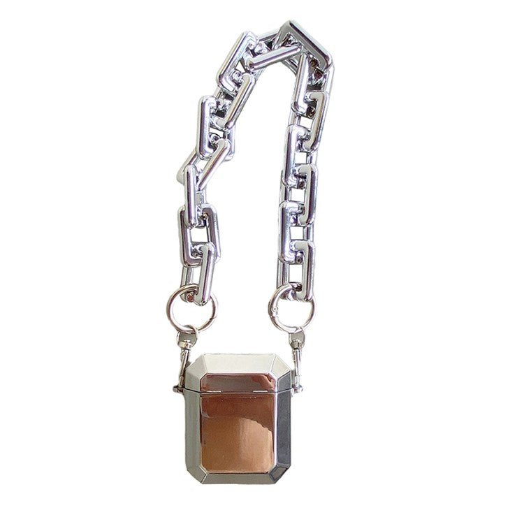 For Apple AirPods with Charging Case (2016) / (2019) / AirPods with Wireless Charging Case (2019) Protective Case Electroplating TPU Anti-drop Cover with Hand Chain - Silver