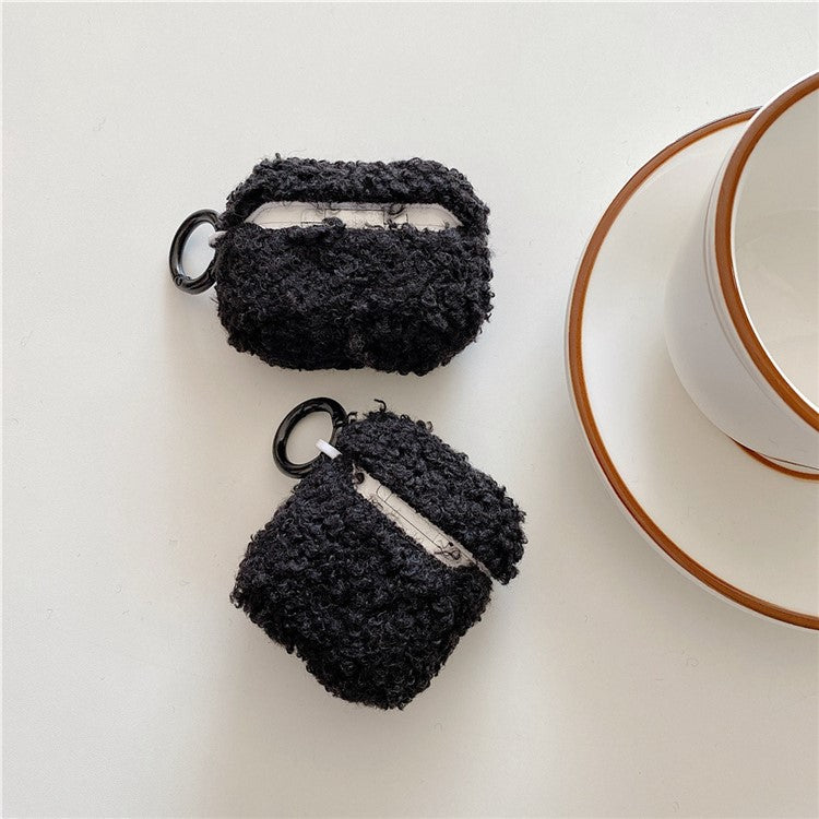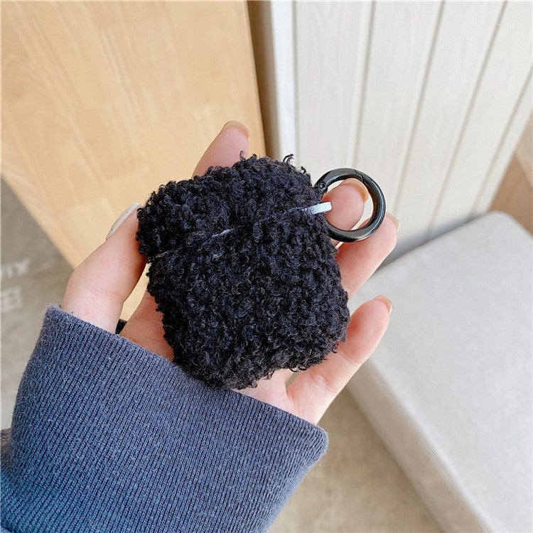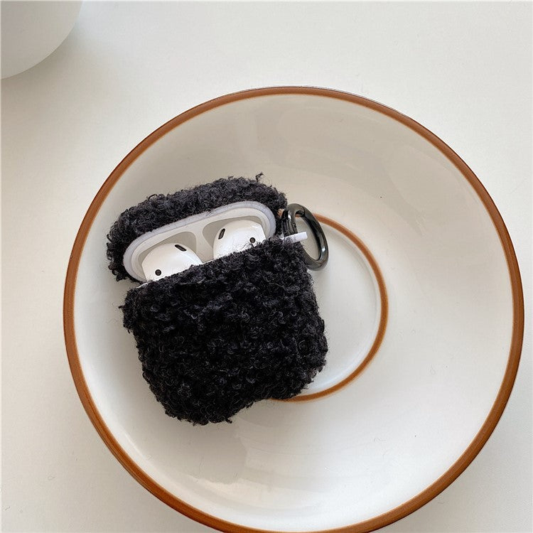 For Apple AirPods with Charging Case (2016)  /  (2019)  /  AirPods with Wireless Charging Case (2019) Shockproof Cover Bluetooth Earbuds Protector Fluff + TPU Case with Buckle - Black