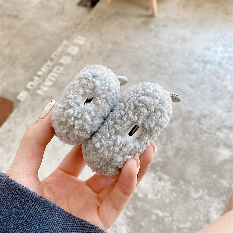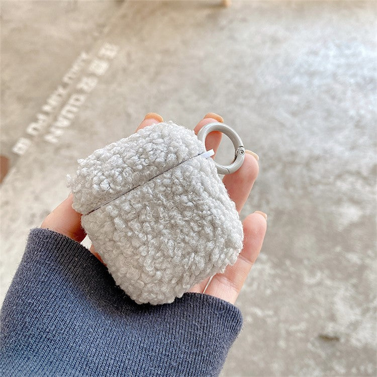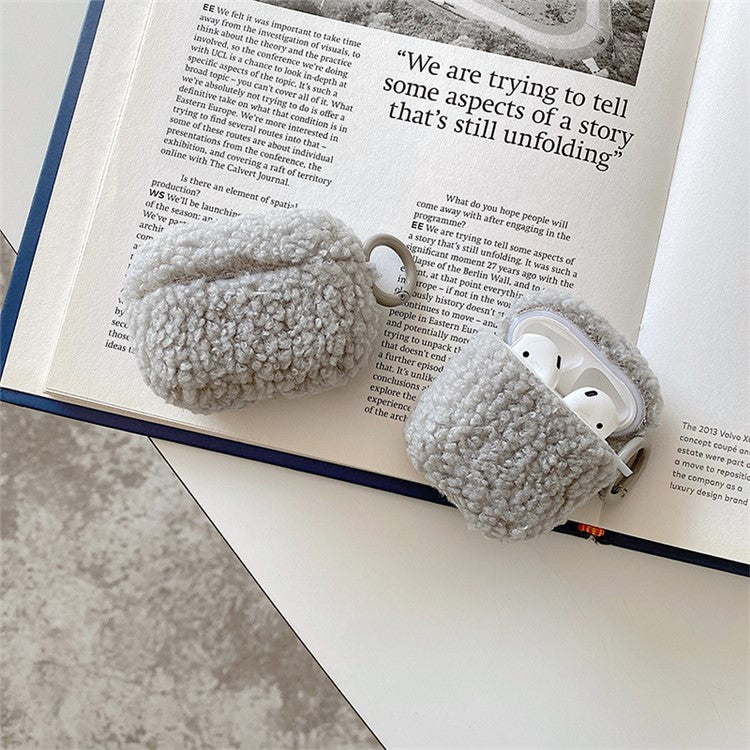 For Apple AirPods with Charging Case (2016) / (2019) / AirPods with Wireless Charging Case (2019) Shockproof Cover Bluetooth Earbuds Protector Fluff + TPU Case with Buckle - Grey