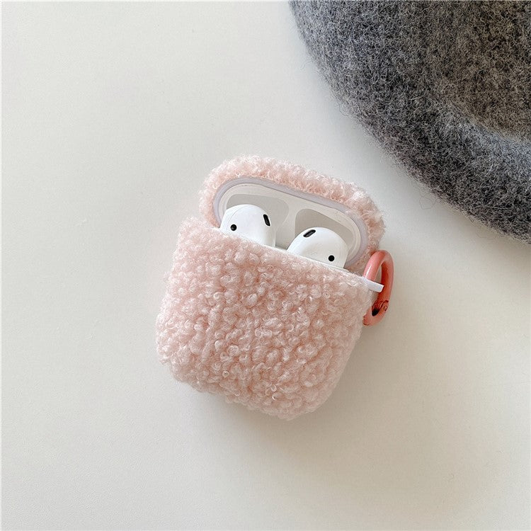 For Apple AirPods with Charging Case (2016) / (2019) / AirPods with Wireless Charging Case (2019) Shockproof Cover Bluetooth Earbuds Protector Fluff + TPU Case with Buckle - Pink
