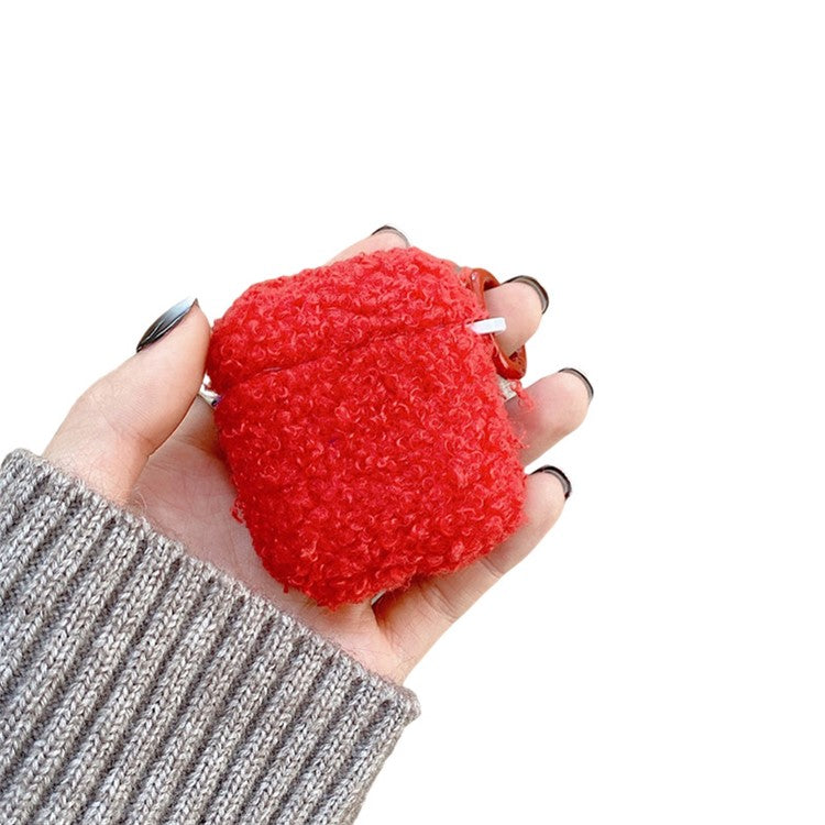 For Apple AirPods with Charging Case (2016) / (2019) / AirPods with Wireless Charging Case (2019) Shockproof Cover Bluetooth Earbuds Protector Fluff + TPU Case with Buckle - Red