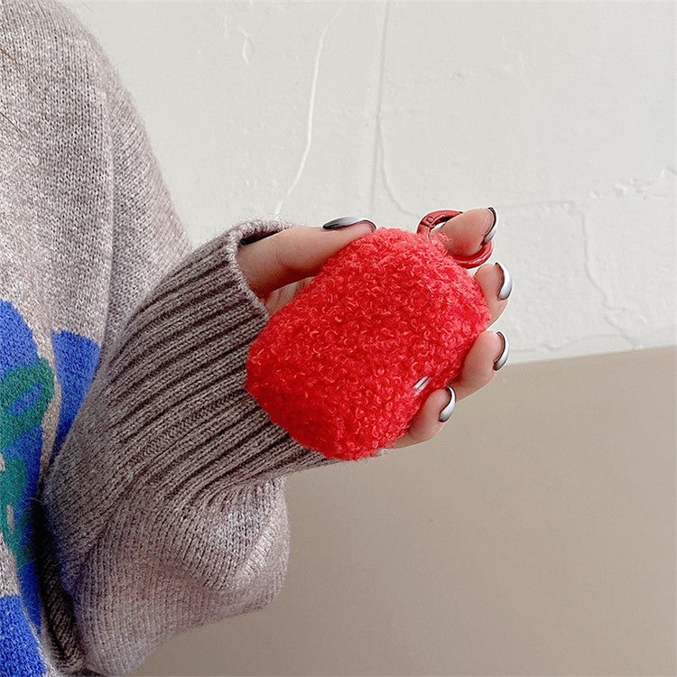 For Apple AirPods with Charging Case (2016)  /  (2019)  /  AirPods with Wireless Charging Case (2019) Shockproof Cover Bluetooth Earbuds Protector Fluff + TPU Case with Buckle - Red