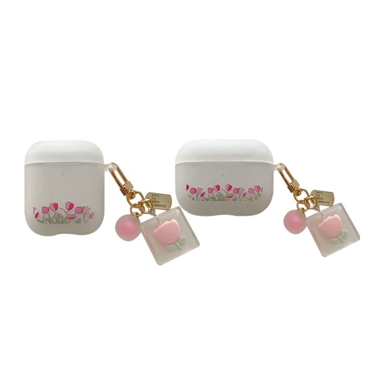For Apple AirPods with Charging Case (2016)/(2019)/AirPods with Wireless Charging Case (2019) Tulip Pattern Earphone Case Flexible Soft TPU Protective Cover with Tulip Pendant
