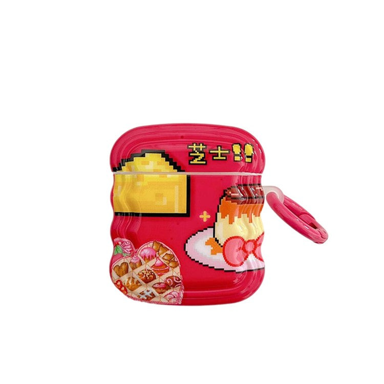 For Apple AirPods with Charging Case (2016) / (2019) / AirPods with Wireless Charging Case (2019) Wave Edge Cheese Pattern TPU Earphone Case Protective Cover with Ring Buckle
