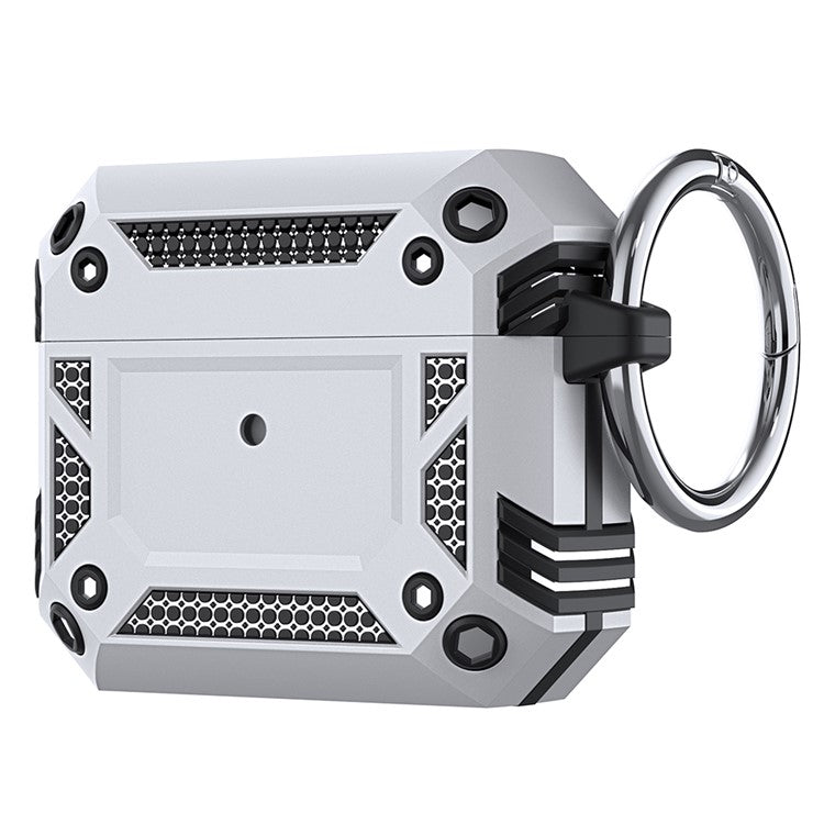 Hard PC Soft TPU Bluetooth Anti-Drop Earphone Case with Carabiner for Apple AirPods 3 - Silver