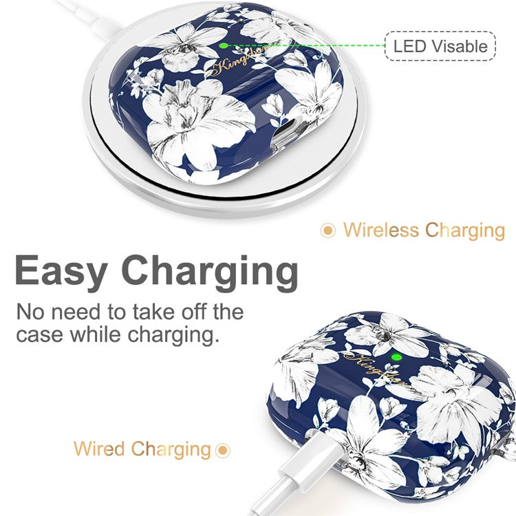KINGXBAR Flower Pattern Anti-drop Soft TPU Protective Case Bluetooth Earphone Cover with Keyring for Apple AirPods 3 - Lily
