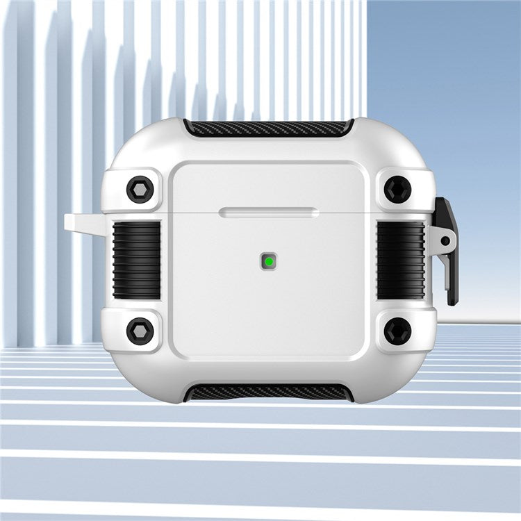 PC + TPU Earphone Protective Case for Apple AirPods 3, Lock Buckle Design Earbuds Charging Box Cover with Carabiner - White