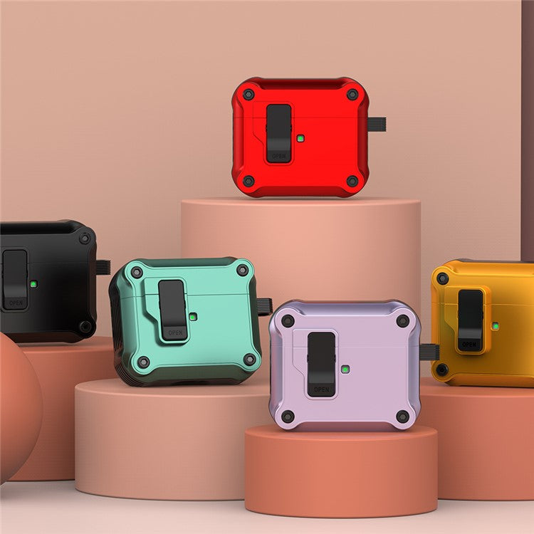 Protective Case for Apple AirPods 3 Case TWS Earbuds TPU+PC Cover with Auto Opening Lock and Carabiner - Dark Blue