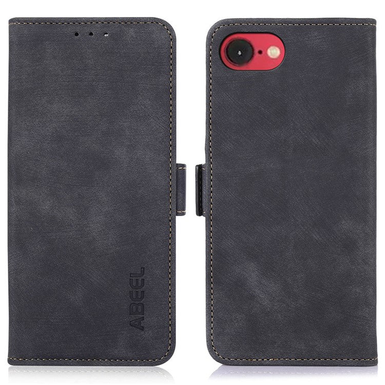 ABEEL For iPhone 16e Case Retro Leather Phone Cover Wallet Stand View - Black