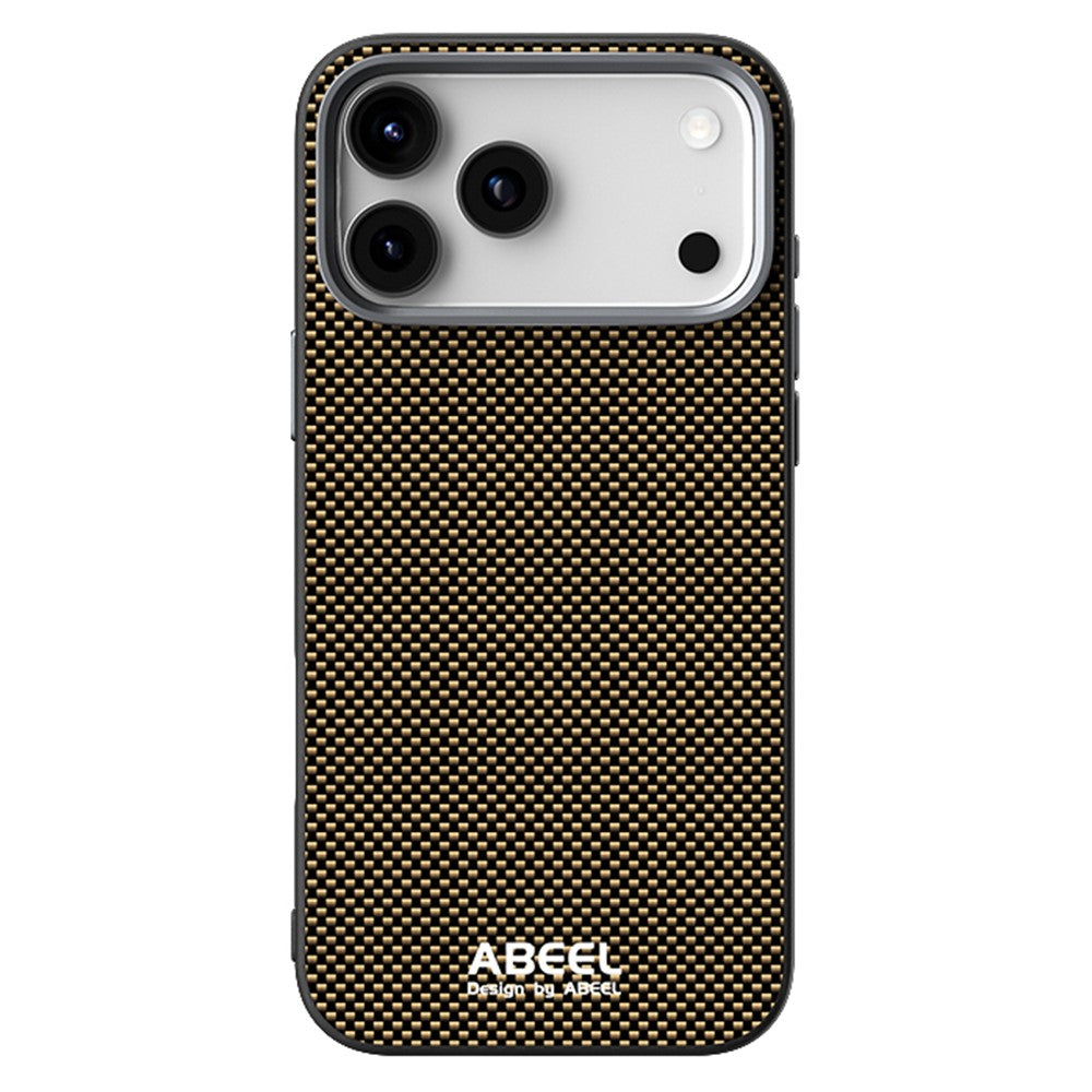 ABEEL For iPhone 17 Pro Max Case Compatible with MagSafe Printed PC TPU Aluminum Alloy Leather Phone Cover - Gold