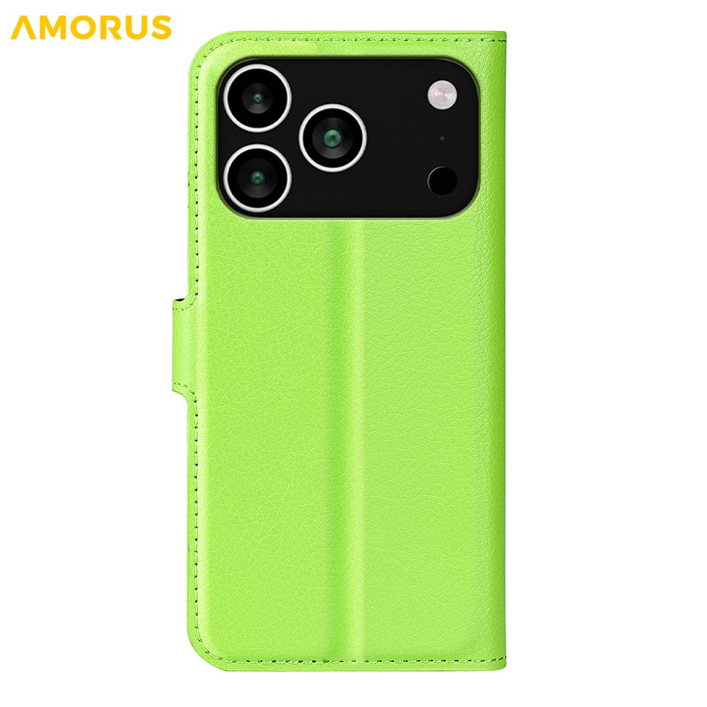 AMORUS For iPhone 17 Pro Max Wallet Case Litchi Texture Shockproof Leather Flip Stand Phone Cover - Green