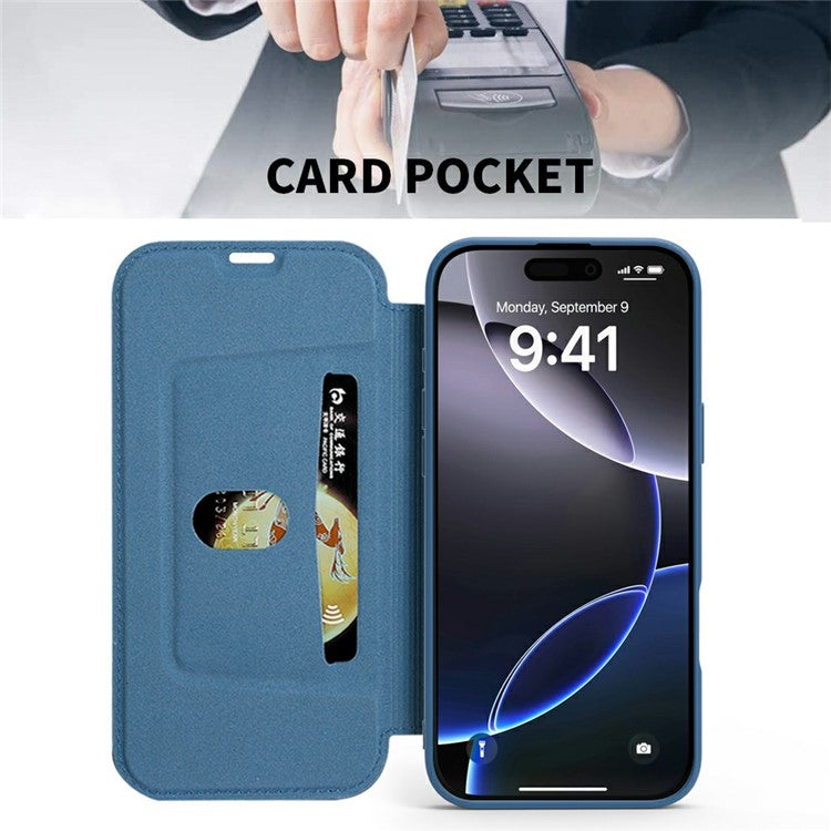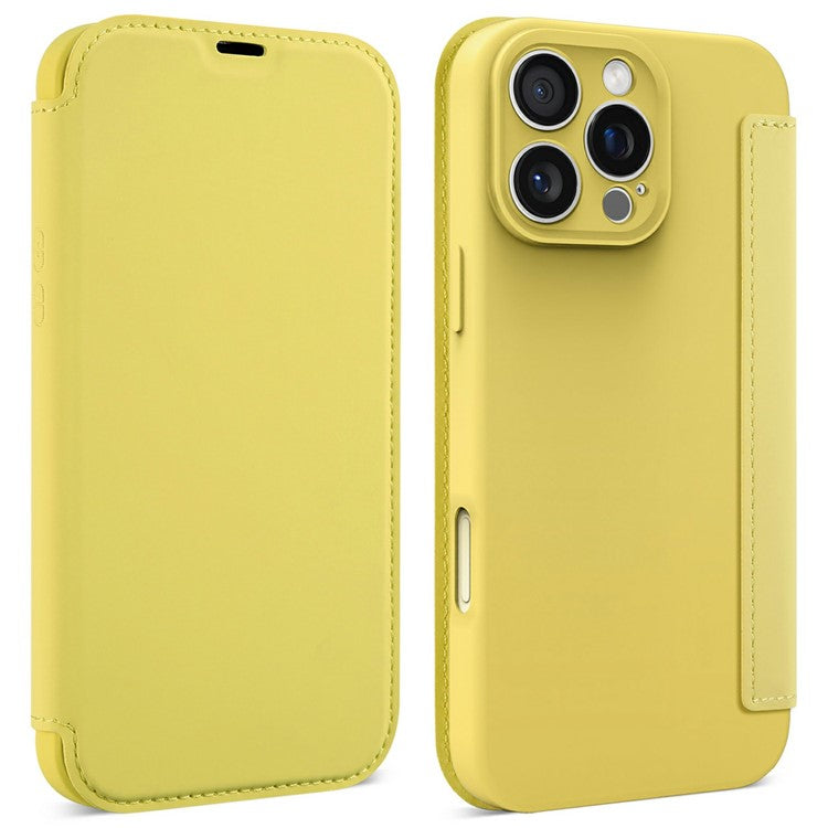 For iPhone 16 Pro Case Card Holder Kickstand Liquid Silicone Phone Cover - Yellow
