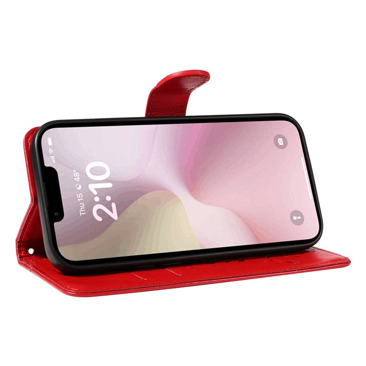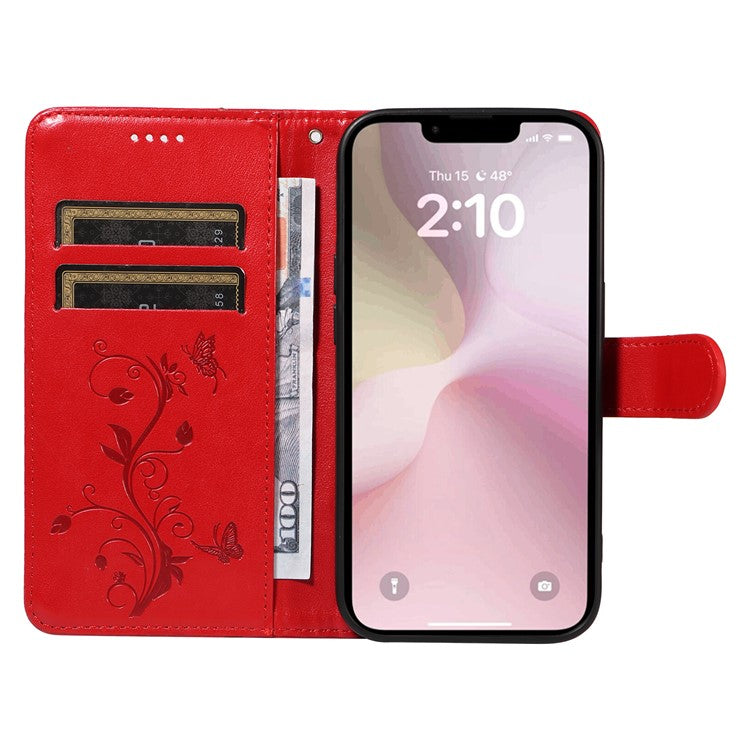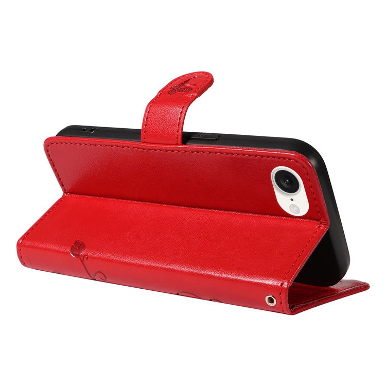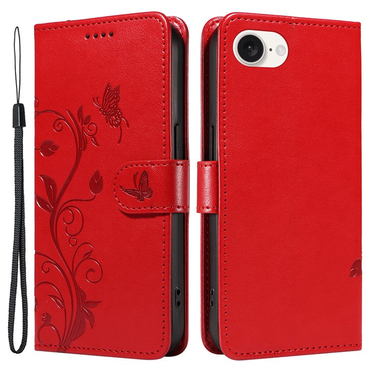 For iPhone 16e Case Butterfly Flower PU Leather Phone Cover with Card Holder - Red