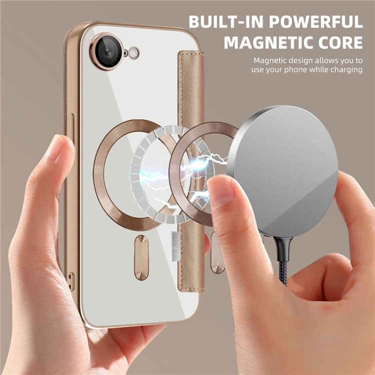 For iPhone 16e Case Compatible with MagSafe RFID Blocking Leather Phone Cover - Desert Gold