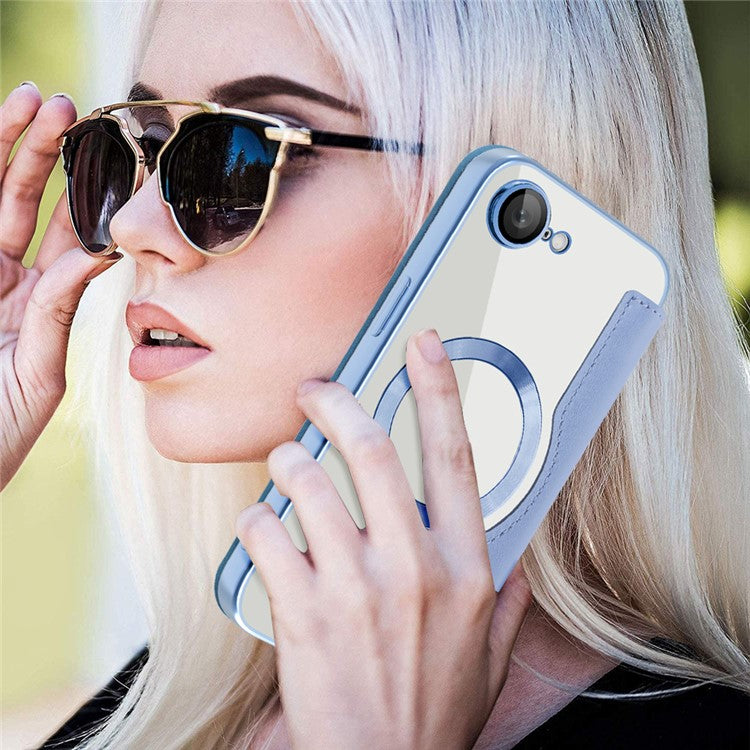 For iPhone 16e Case Compatible with MagSafe Rhombus PU Leather Phone Cover - Blue