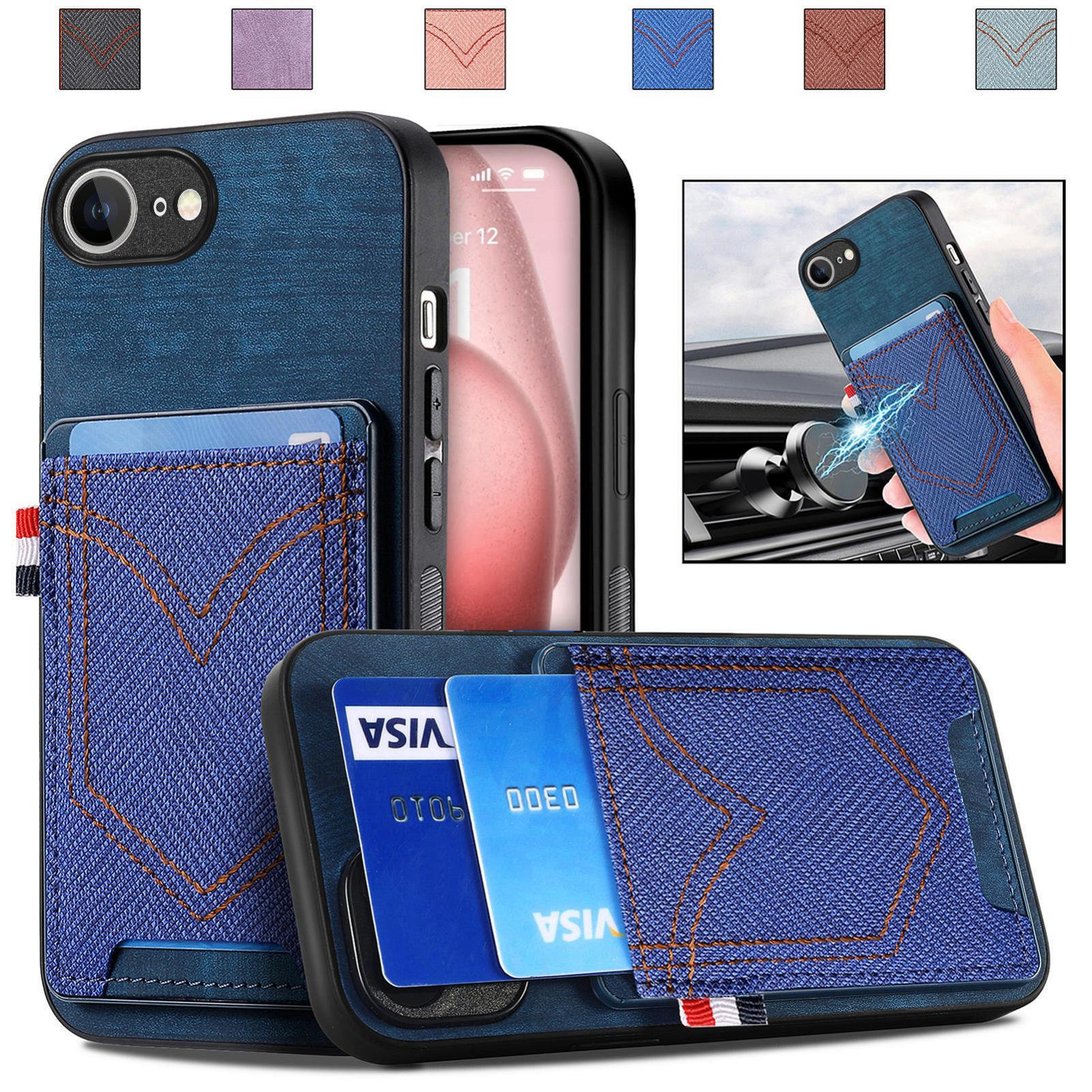 For iPhone 16e Denim Texture Leather Skin Phone Case with Card Slot(Blue)