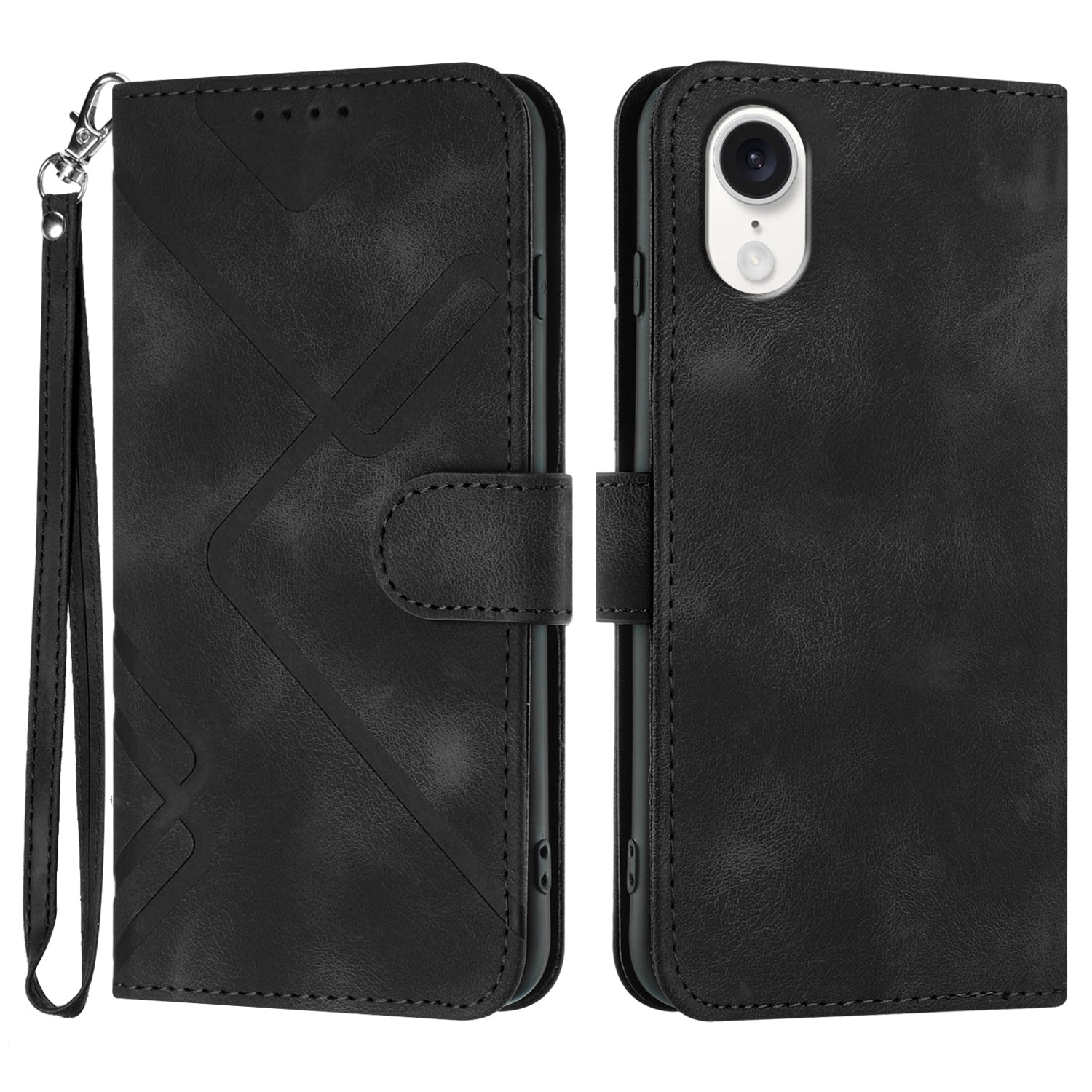 For iPhone 16e Line Pattern Skin Feel Leather Phone Case(Black)
