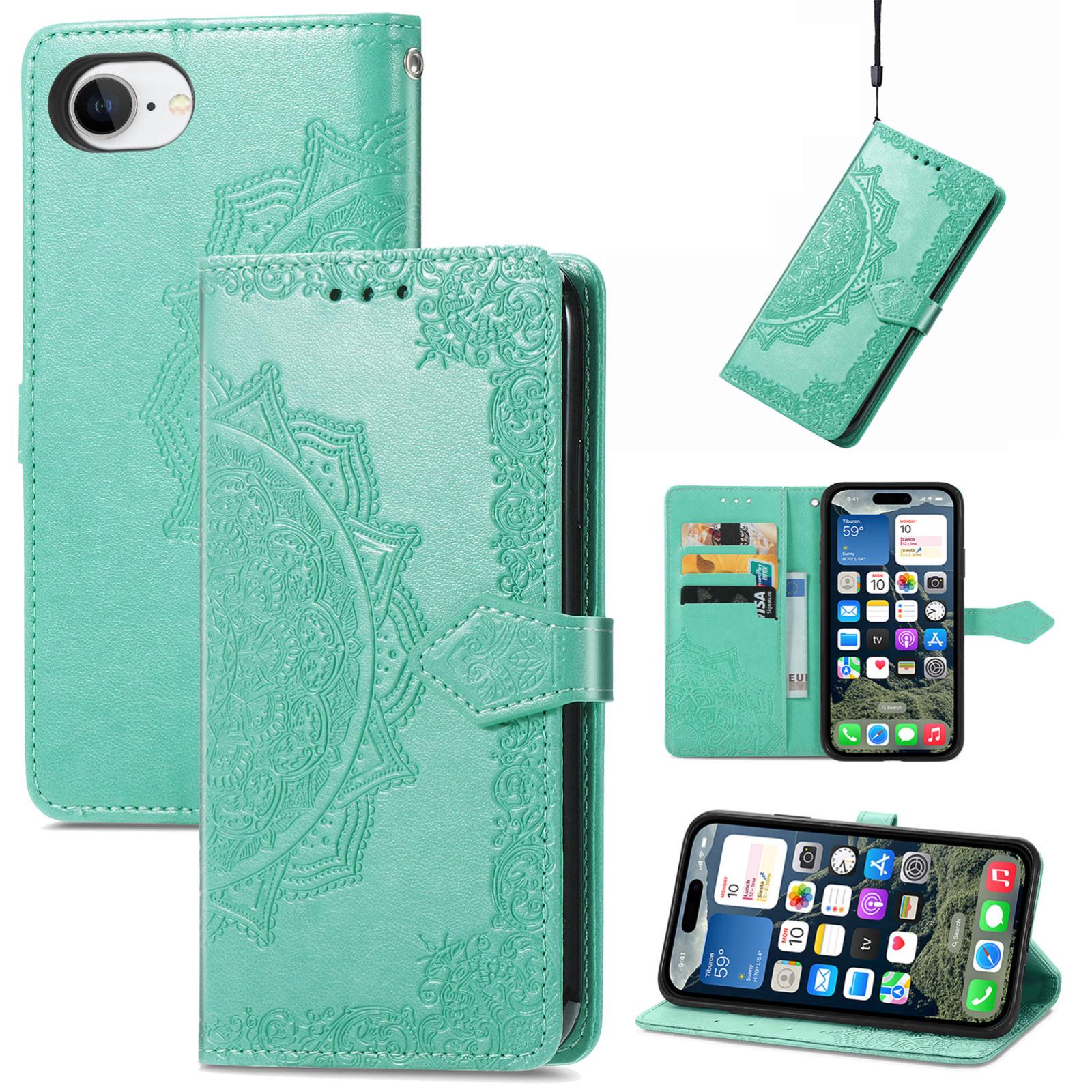 For iPhone 16e Mandala Flower Embossed Leather Phone Case(Green)