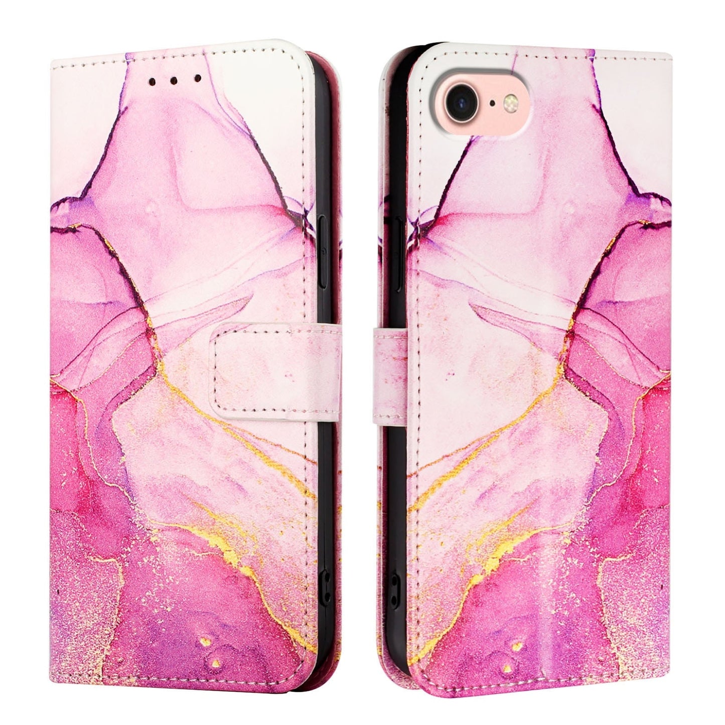 For iPhone 16e PT003 Marble Pattern Flip Leather Phone Case(Pink Purple Gold LS001)