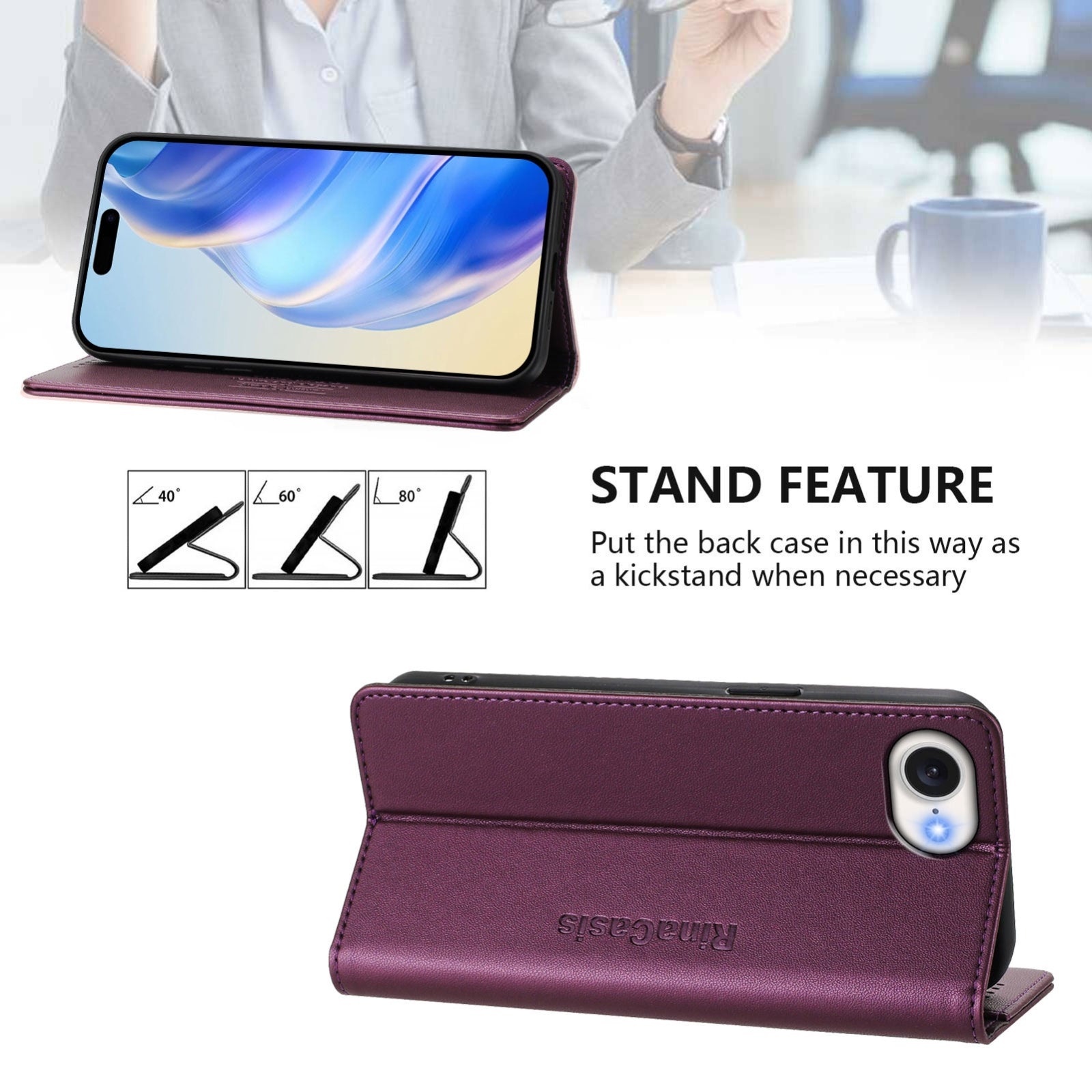 For iPhone 16e RC01 Dual-Folded Magnetic Suction RFID Leather Phone Case(Violet)