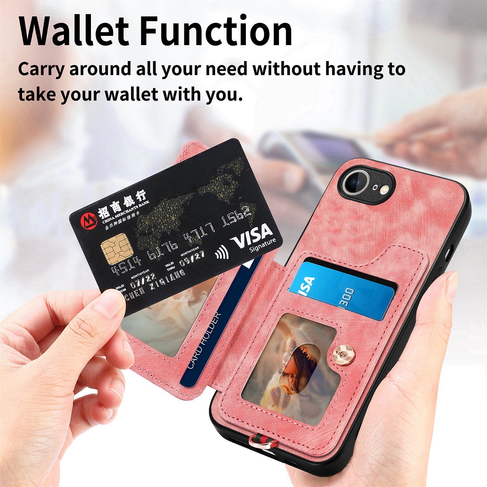 For iPhone 16e Retro PU Leather Back Cover with RFID Blocking Card Holder - Pink