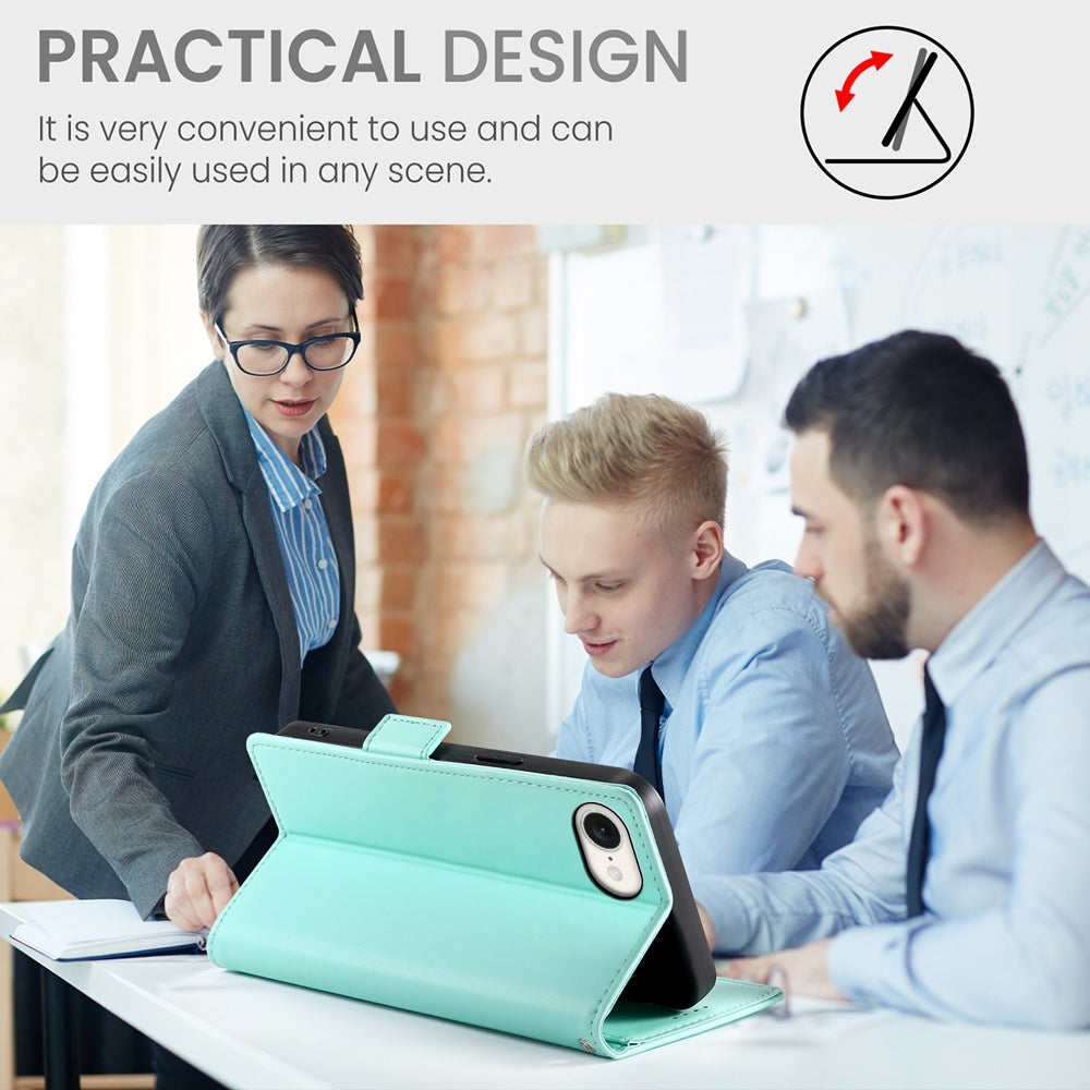 For iPhone 16e Side Buckle Magnetic Frosted Leather Phone Case(Mint Green)
