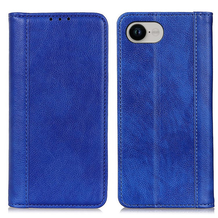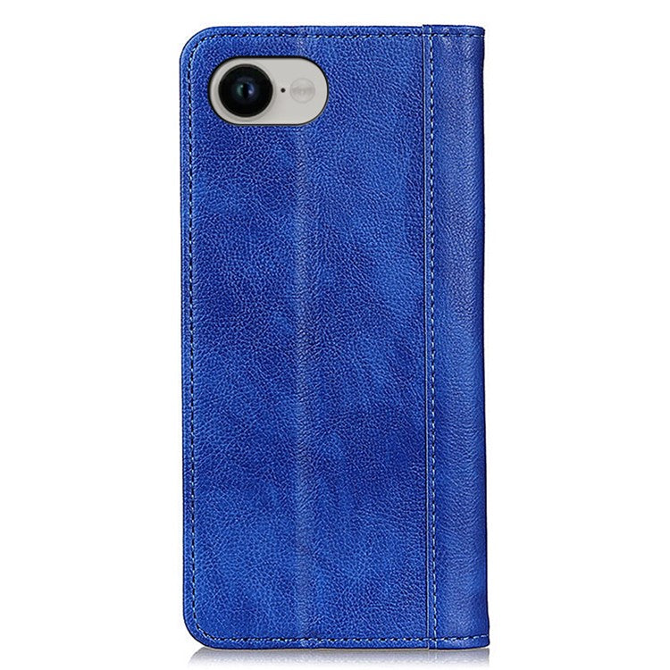 For iPhone 16e Stand Case Split Leather Litchi Texture Wallet Phone Cover - Blue