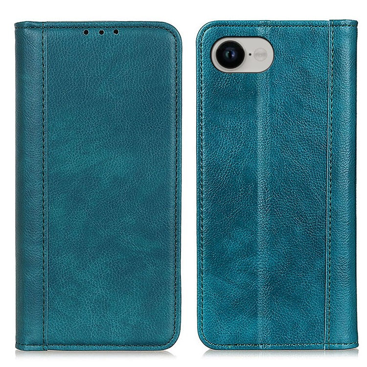 For iPhone 16e Stand Case Split Leather Litchi Texture Wallet Phone Cover - Green