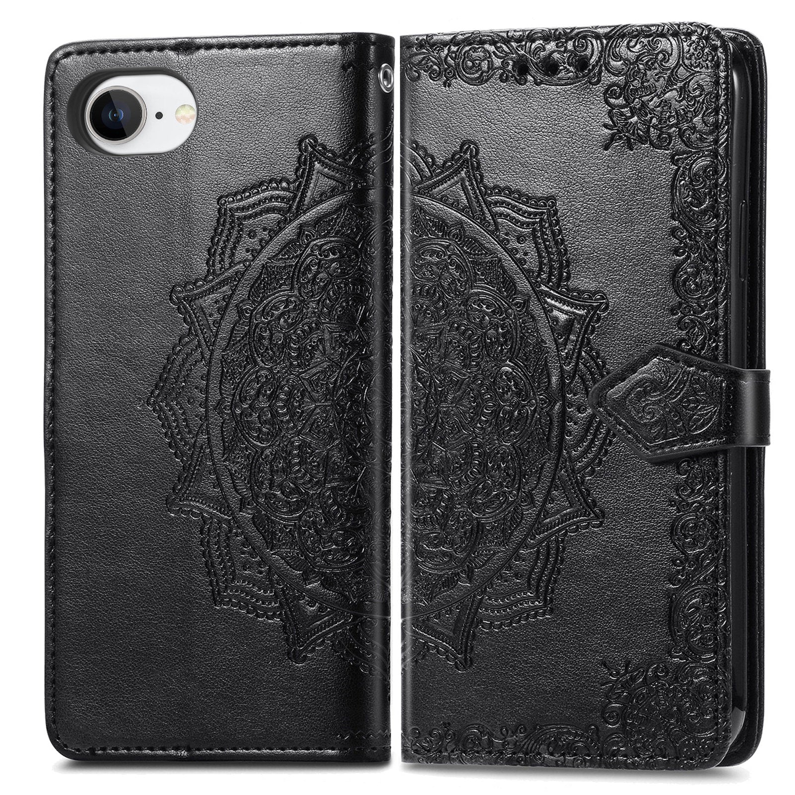 For iPhone 16e Wallet Case Mandala Flower Leather Phone Cover Stand - Black