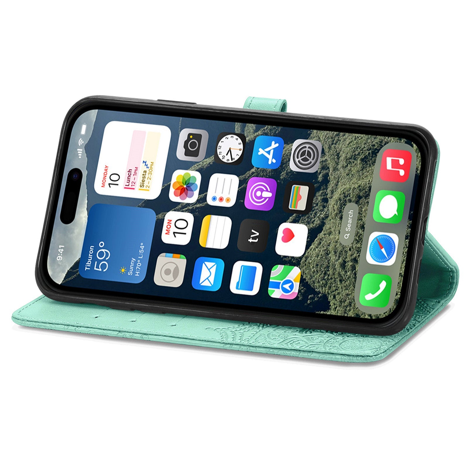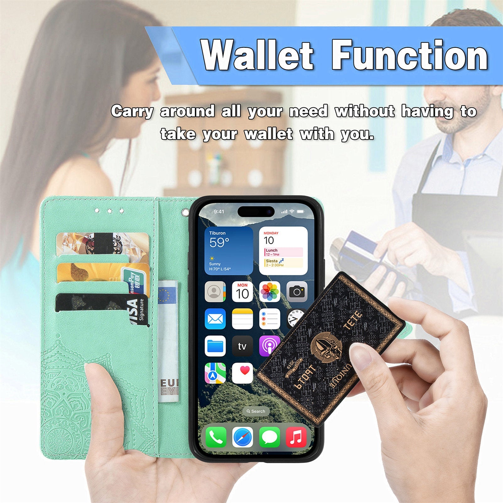For iPhone 16e Wallet Case Mandala Flower Leather Phone Cover Stand - Green