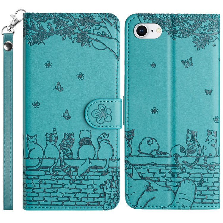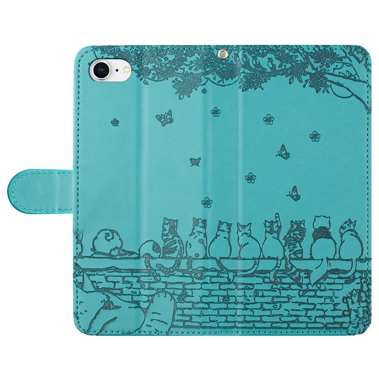 For iPhone 16e Wallet Case PU Leather Wall Cats Pattern Phone Cover - Blue