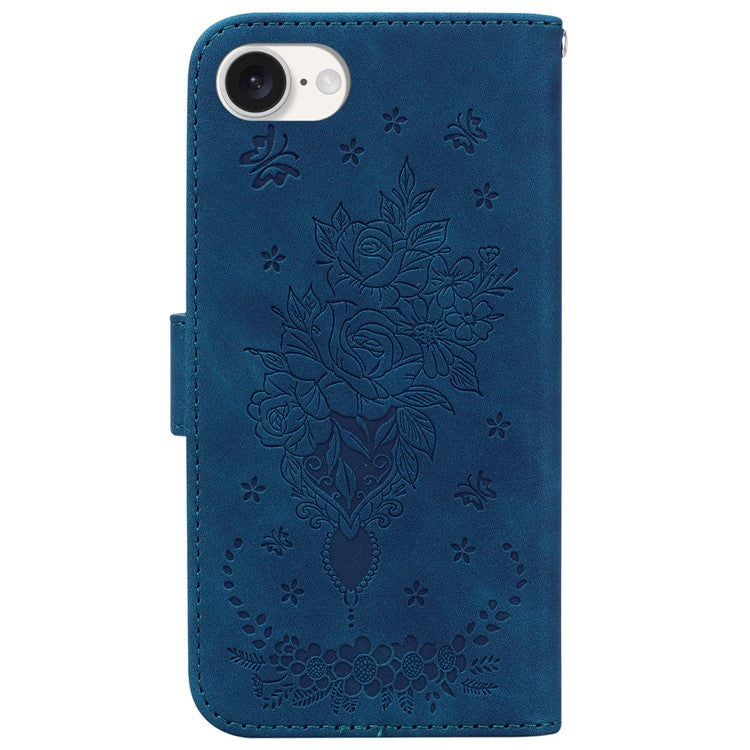 For iPhone 16e Wallet Phone Cases Wholesale Flower Imprint PU Leather Cover - Blue