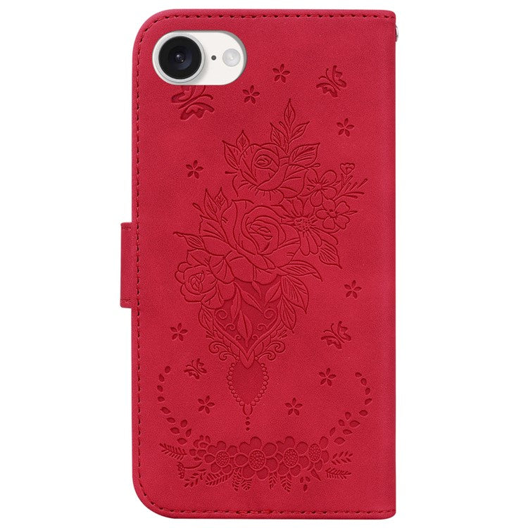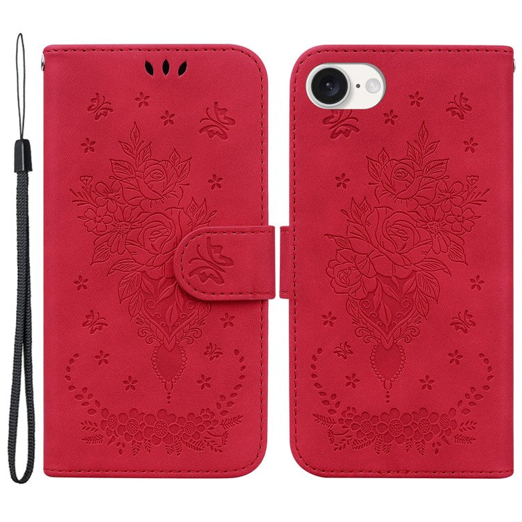 For iPhone 16e Wallet Phone Cases Wholesale Flower Imprint PU Leather Cover - Red