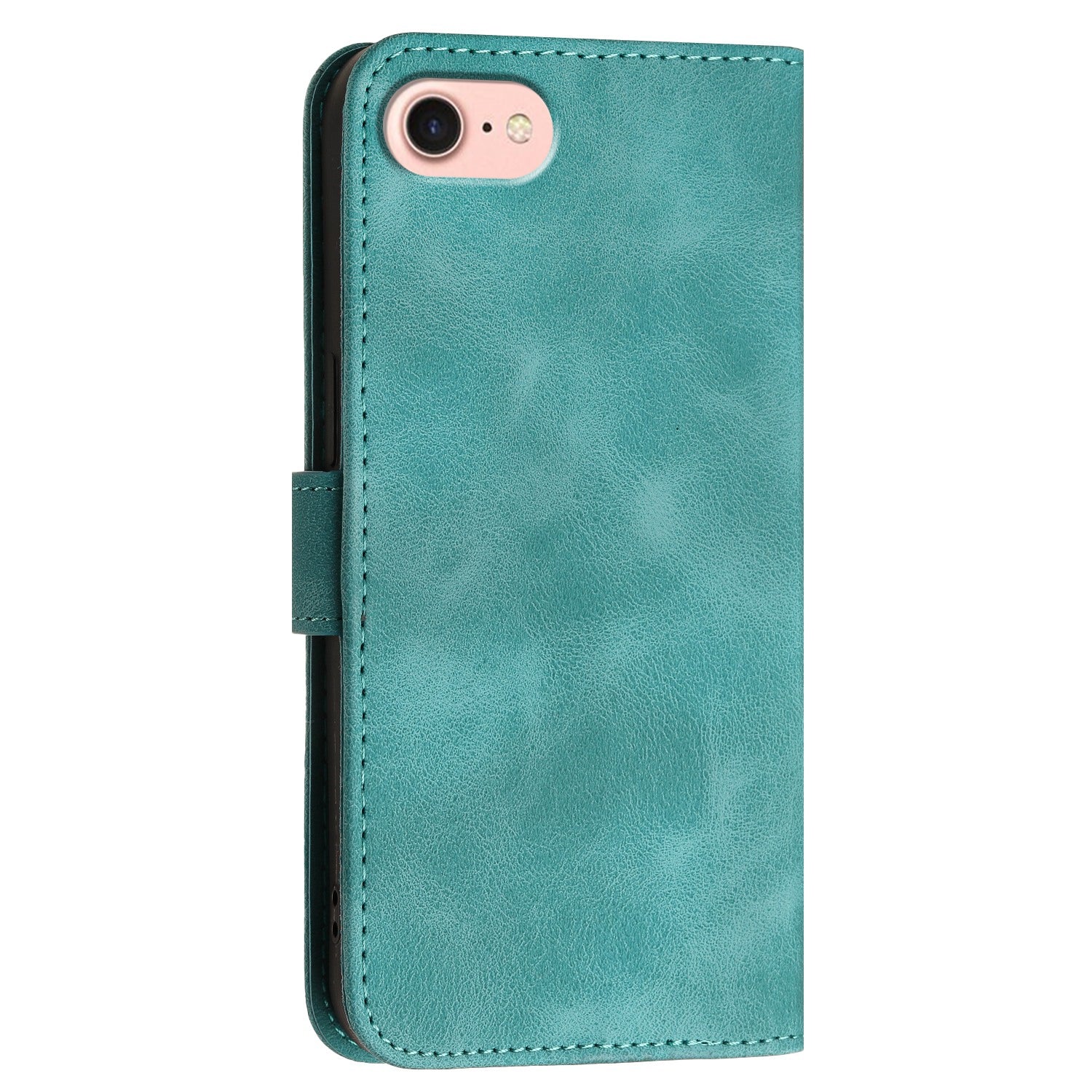 For iPhone 16e YX0080 Grid Butterfly Embossed Pattern Flip Leather Phone Case with Lanyard(Light Blue)