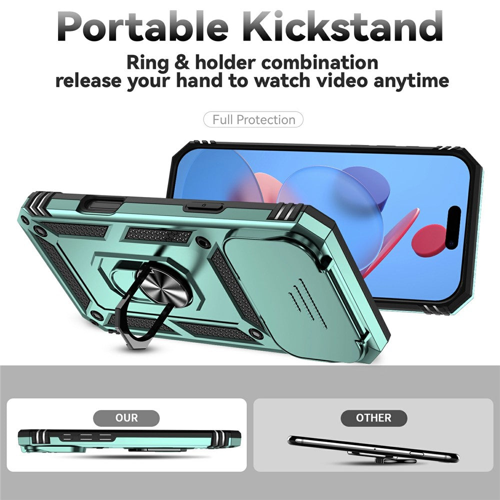 For iPhone 17 Pro Max Case PC + TPU Phone Cover with Lens Protection Kickstand - Blackish Green