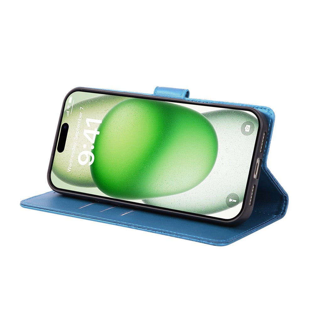 For iPhone 17 Pro Max Case Rose Flower PU Leather Wallet Phone Cover with 3 Card Slots / Wrist Strap - Blue