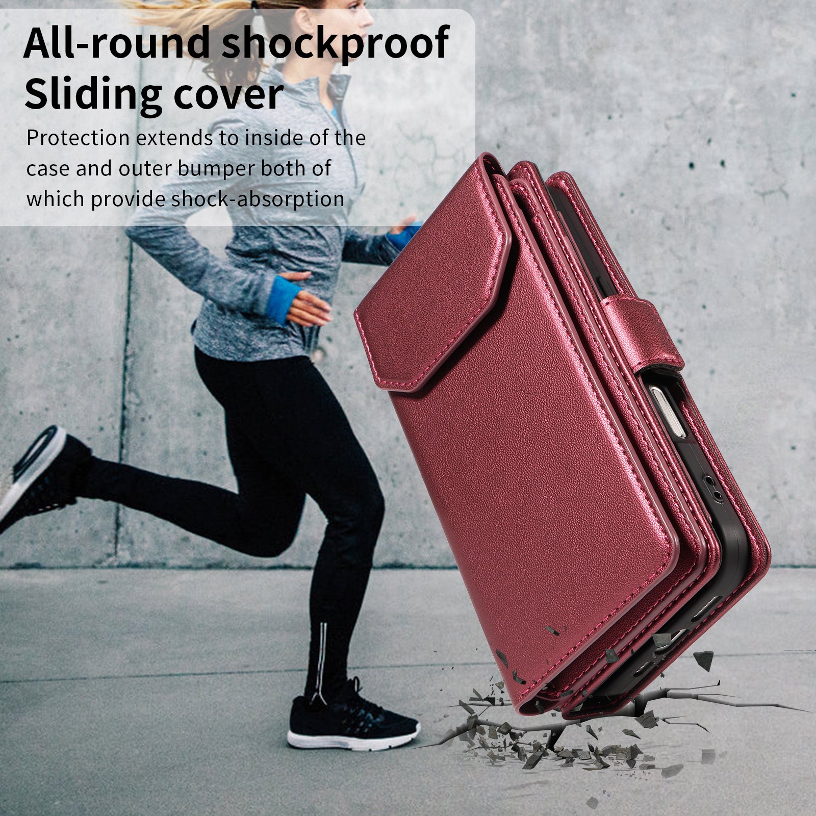 For iPhone 17 Pro Max Case with Multi-Card Holder and Strap PU Leather Phone Cover Stand - Red